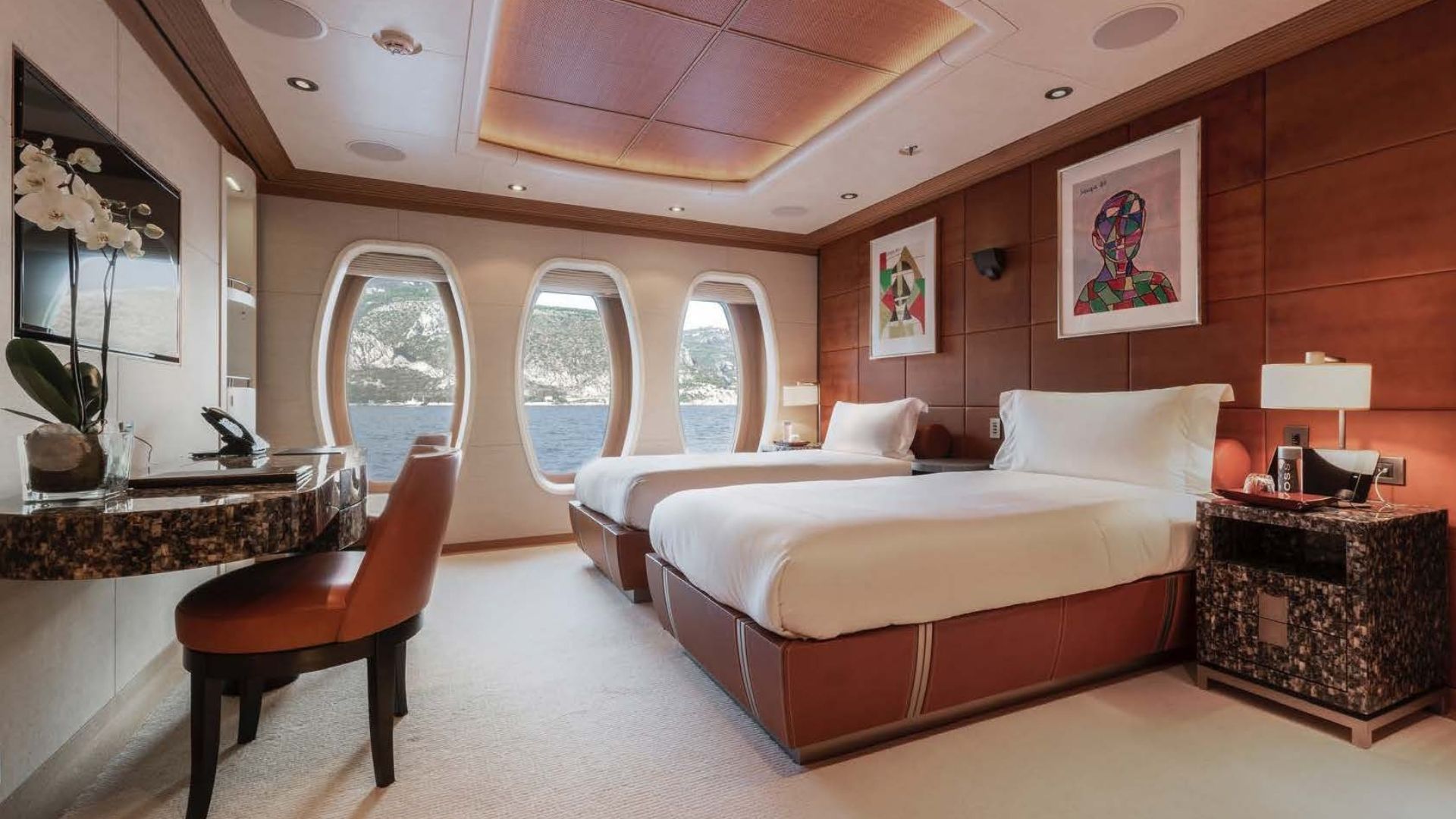 She comfortably accommodates 22 guests across 9 roomy cabins. This model was built to entertain with her myriad of lounge and dining areas, deluxe spa and convertible home cinema.
