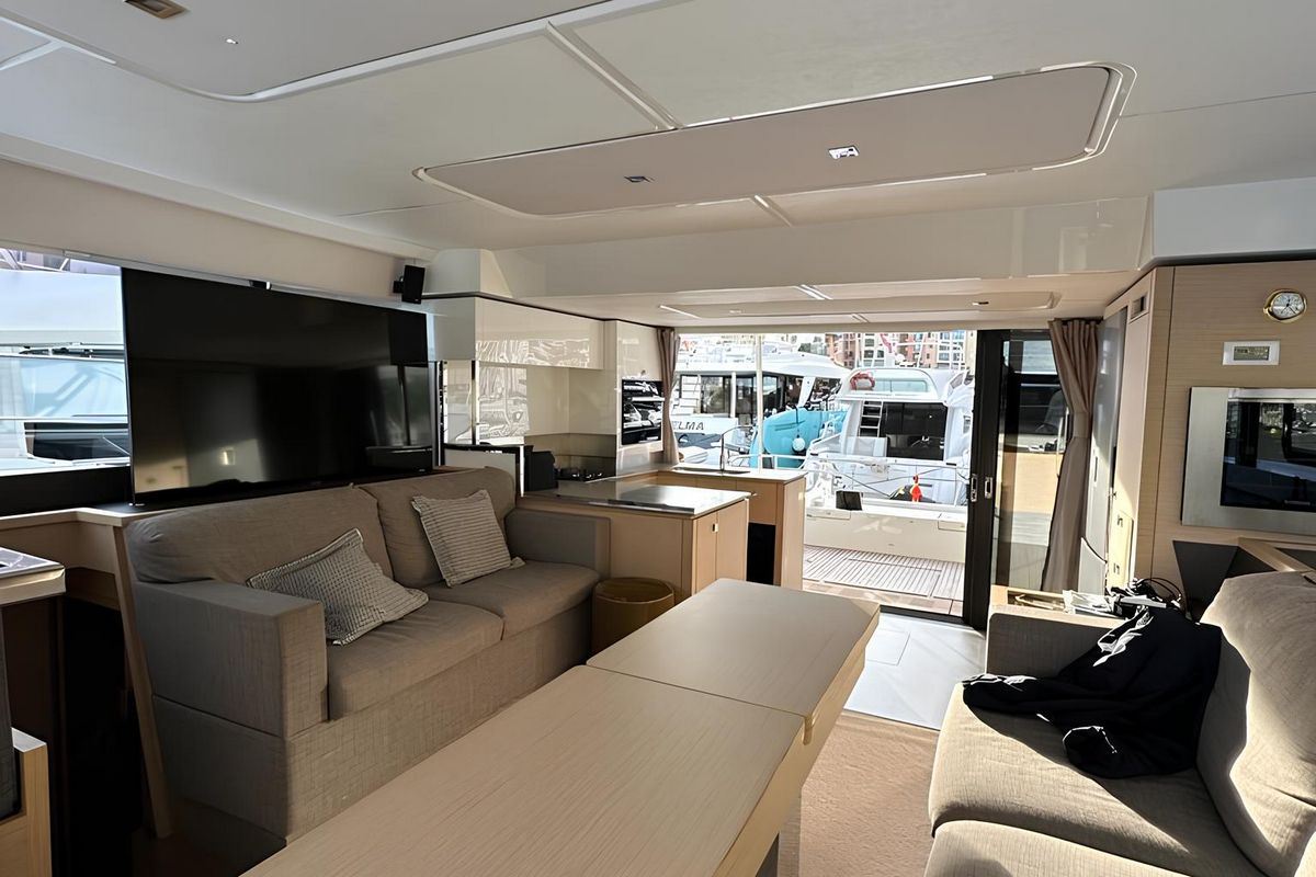 The MY6 by Fountaine Pajot stands at the forefront of the 44-foot power cat cruising market, setting new standards in design, space, and efficiency. This catamaran was built in 2018 and is in excellent condition. Brand new stern hydraulic platform replacement in 2024. Possibility to carry out a Volvo Penta Long Block Change (60,000 EUR), which would reset the engine hours to zero, and provide a 2-year official Volvo warranty.Crafted by esteemed naval architects Daniel Andreiu and Pierangelo Andreani, the MY6 earned the prestigious «2018 European Power Boat of the Year» award, showcasing extraordinary volumes, equivalent to those offered by a 20 meter monohull. Boasting expansive living areas, including a 20m² saloon, 12m² flybridge, and a luxurious 15m² master suite, the MY6 offers unparalleled comfort and style.