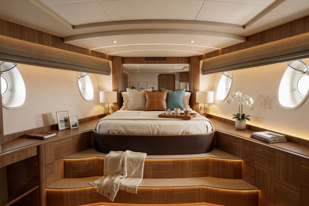 The interior approach is focused on usability. Layout, lighting, and detailing are arranged with function in mind, without unnecessary elements. The overall design remains restrained, combining classic proportions with modern solutions aimed at supporting extended time on board.