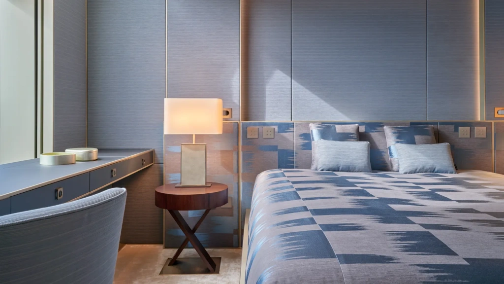 Interiors were developed by Armani/Casa with direct involvement from Giorgio Armani himself. The design language is consistent throughout: disciplined proportions, controlled contrasts, and materials selected for tactility rather than visual drama. Champagne, ivory, and greige tones dominate, allowing stone, wood, and metal finishes to define each space without competing for attention.