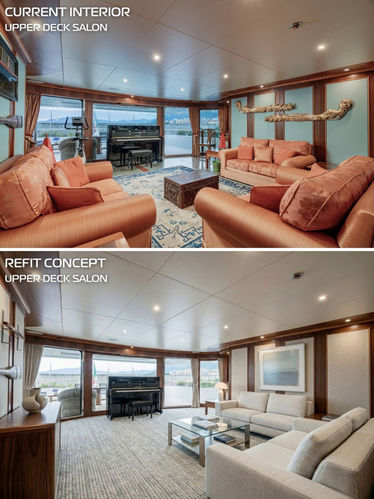 To demonstrate her potential and customizability, we have created exclusive renders of a refresh of the interior. This redesign is specifically tailored to be an easy and cost-effective update, by keeping the original high-quality woodwork, the flooring and the ceilings untouched. Her new owner could enjoy a complete renewal in his or her taste. Here are some ideas and renders of what that could look like, but please keep in mind that the possibilities are limitless.