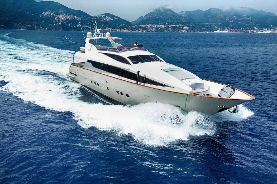 Antago 90 Dea One was built in 2003 by Antago Yachts in Viarregio, Italy, a boutique Italian shipyard, with lines by famous designer Fulvio de Simoni. She has recently undergone a full refit completed between 2022 and 2025, including an extensive interior rebuild. During this period, both MTU 2000 engines were completely overhauled, alongside upgrades to the electrical and hydraulic systems. Mechanical components and generators received thorough revisions.The Antago 90 yacht’s interior and exterior were refreshed with new furnishings, while the teak decking and aft platform were replaced. The lighting system was refurbished, cushions and awnings renewed, and propeller control adjusted with balancing performed. Additionally, the rudder and flap blades were inspected and maintained. In 2022, the hull and superstructure were fully repainted, and mooring cleats and fairleads inspected and serviced.