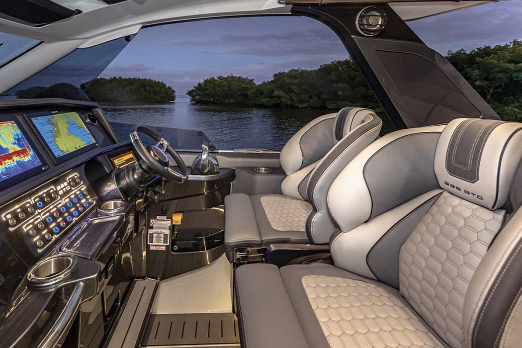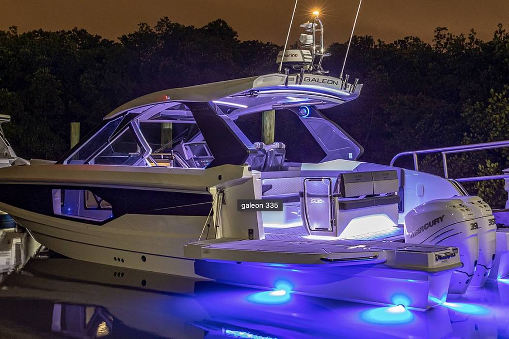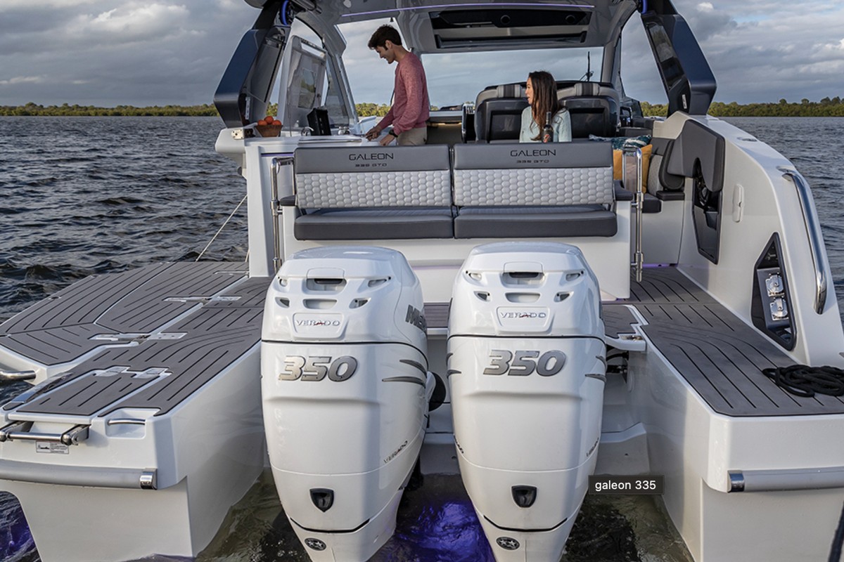 Available for order. The GALEON 335 GTO is a masterclass in modern open-yacht design—where adrenaline meets elegance and every detail serves a purpose.Driven by twin outboards and enhanced by a lightweight carbon fiber hardtop, the 335 GTO combines raw power with refined elegance.