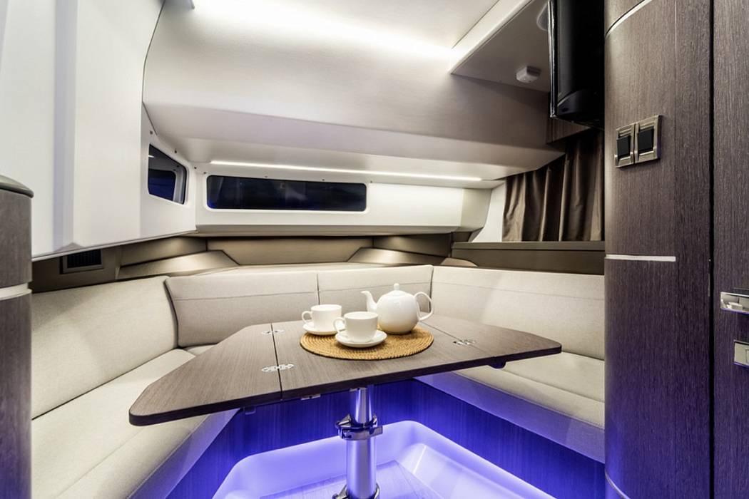 Beneath the deck of the GALEON 335 GTO lies a spacious and cleverly appointed interior. two separate sleeping areas and a full-featured bathroom. The forward dinette easily converts into a spacious double berth, while the central cabin offers a generous second bed—ideal for family getaways or hosting friends. Every inch of the layout is thoughtfully designed to deliver exceptional comfort, style, and flexibility on the water.