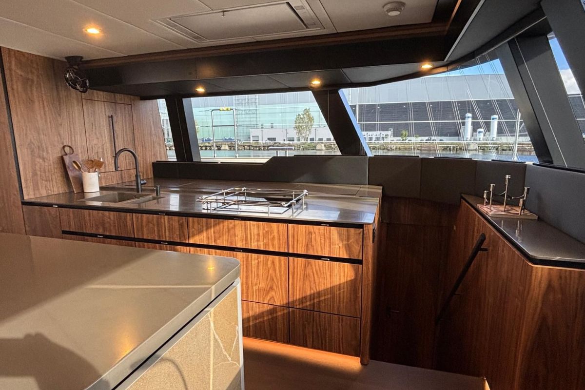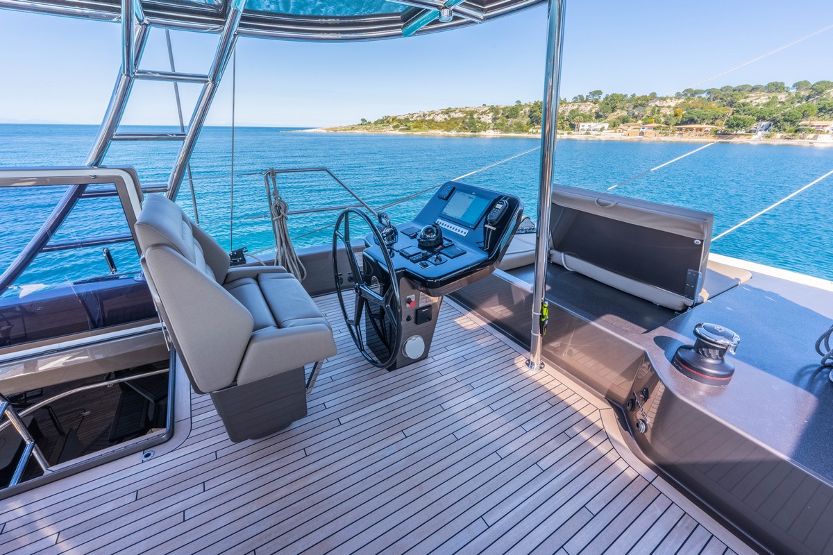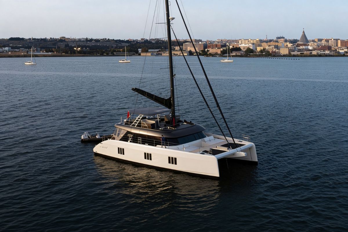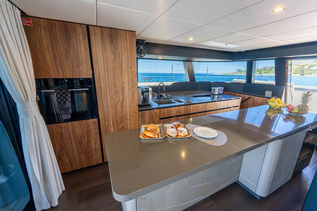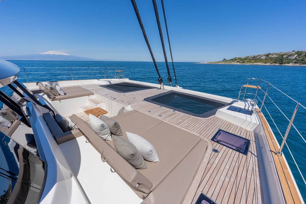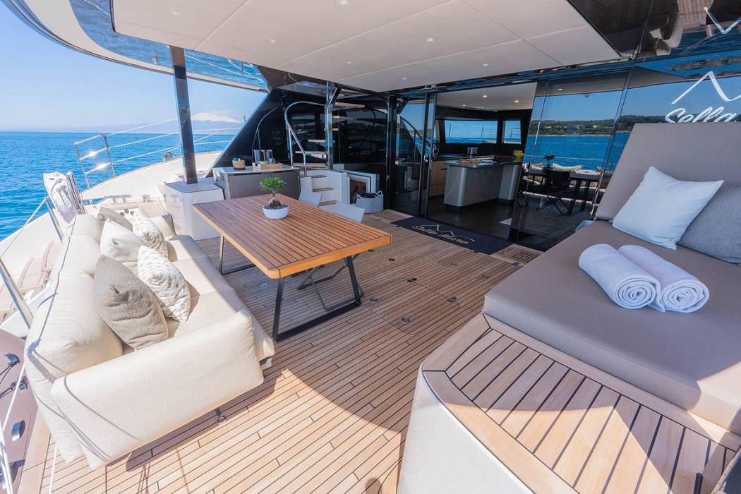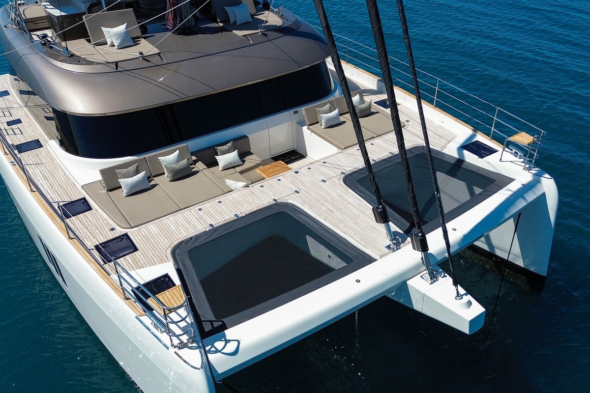 The Sunreef 60 Sailing Sella Mare was specified with a lithium battery bank allowing silent night operation without running the generator.