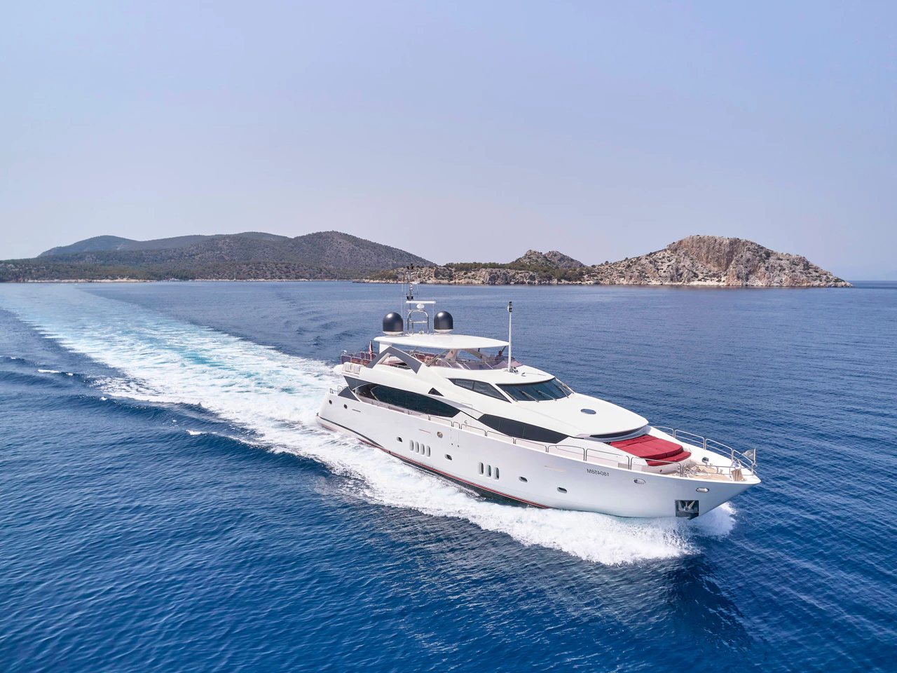 Sunseeker 34 is a fully equipped motor yacht offering accommodation for 8 guests in 4 cabins — including a Master cabin, a VIP cabin, and two guest cabins — as well as comfortable quarters for 6 crew members across 3 crew cabins. VAT paid.