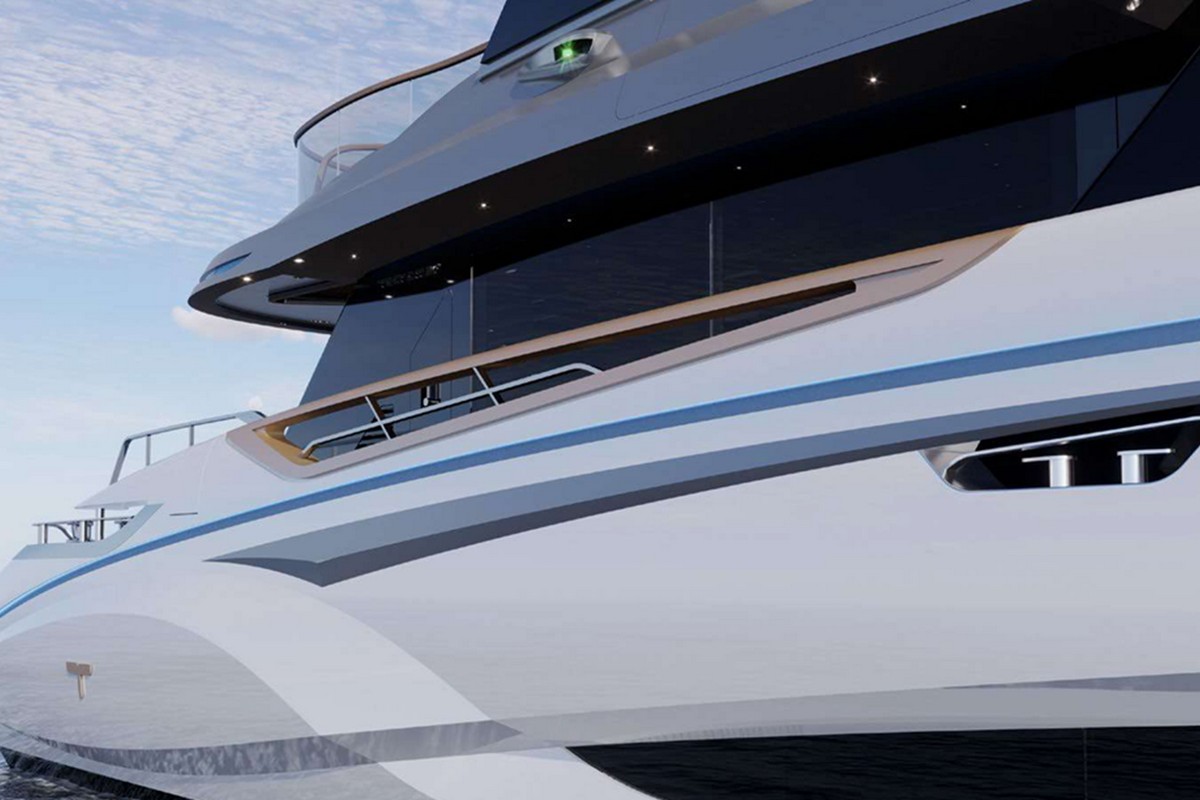 Guest accommodation for 12 is arranged across four cabins on the lower deck: a full-beam owner’s suite, a VIP cabin, and two guest cabins. Crew quarters are located in the bow, ensuring privacy for guests. The stern garage accommodates a tender up to 4.5 metres and additional water toys.