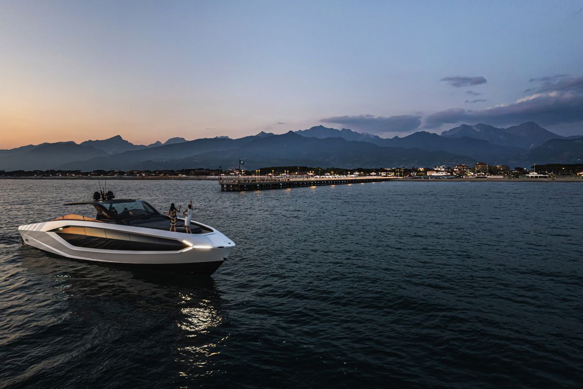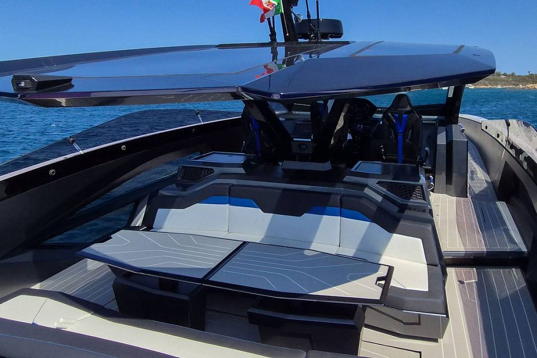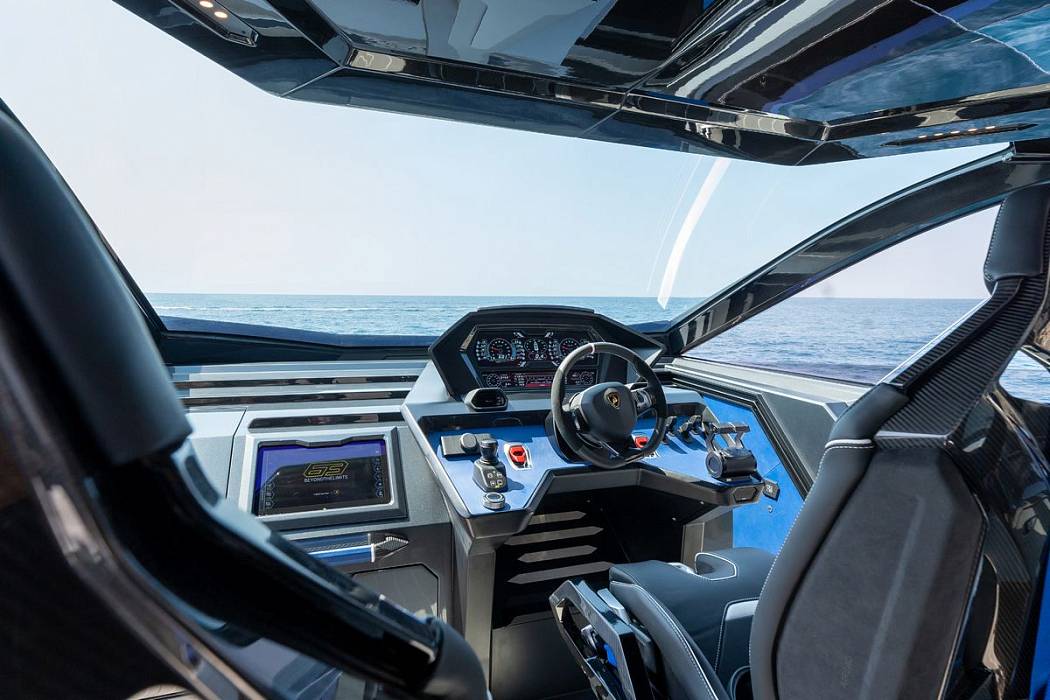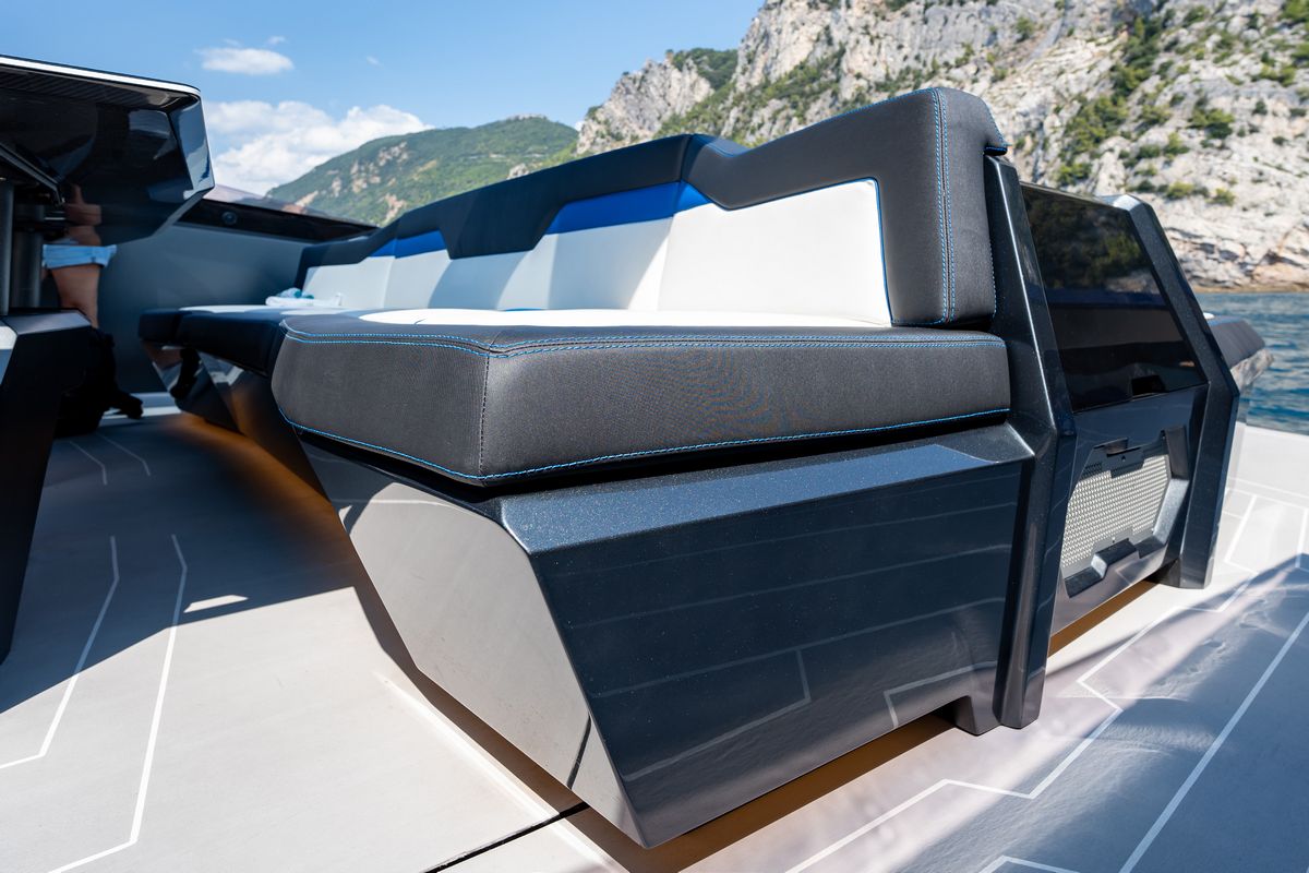 Inside, the Tecnomar for Lamborghini 63 combines lightweight, function-driven materials with Italian craftsmanship. Iconic hexagons, clean lines, and Y-shaped motifs reinforce the automotive DNA.