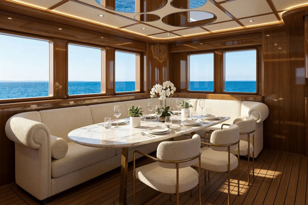 The interior approach is focused on usability. Layout, lighting, and detailing are arranged with function in mind, without unnecessary elements. The overall design remains restrained, combining classic proportions with modern solutions aimed at supporting extended time on board.