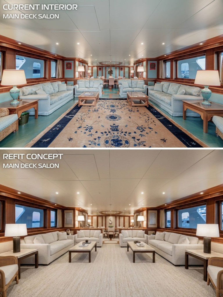 To demonstrate her potential and customizability, we have created exclusive renders of a refresh of the interior. This redesign is specifically tailored to be an easy and cost-effective update, by keeping the original high-quality woodwork, the flooring and the ceilings untouched. Her new owner could enjoy a complete renewal in his or her taste. Here are some ideas and renders of what that could look like, but please keep in mind that the possibilities are limitless.