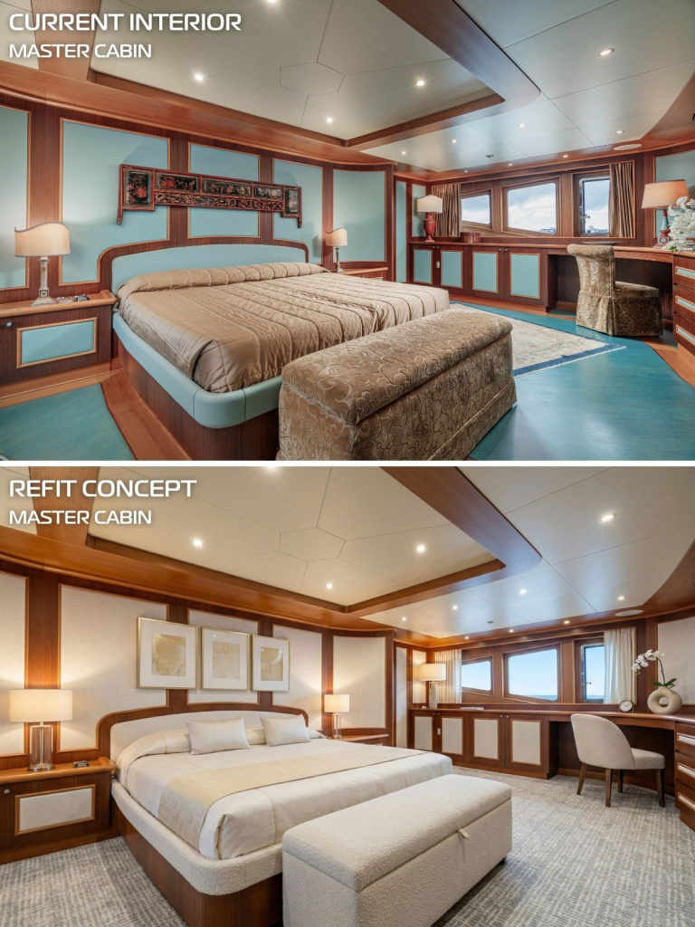New Master has never been offered for charter and has been strictly used for private use. Her current owner has deeply cared for the vessel, hence her amazing condition. She underwent substantial updates between 2019 and 2015, with major works including a total painting of the hull and superstructure in 2020, three brand-new Kohler 80kW generators in 2024-2025 and even received an overhaul of her main Deutz engines.