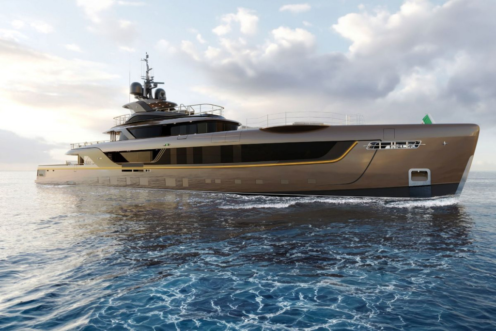 The 55-meter Admiral S-Force 55 is taking shape in aluminum at the Italian Sea Group yard, with her hull and superstructure already joined. Delivery can be scheduled about 20 months from signing. She’s built for a top speed of 18 knots and a range of around 3,500 miles at 10. Deck plans follow a practical logic. The sundeck carries a Jacuzzi, small gym space, and sunpads. Forward, there’s room for a touch-and-go helipad. The tender garage fits an eight-meter boat plus toys. Inside, six cabins sleep twelve guests, with the master forward on the main deck. Large windows frame the salon, and the shipyard leaves broad scope for an owner’s own interior plan.