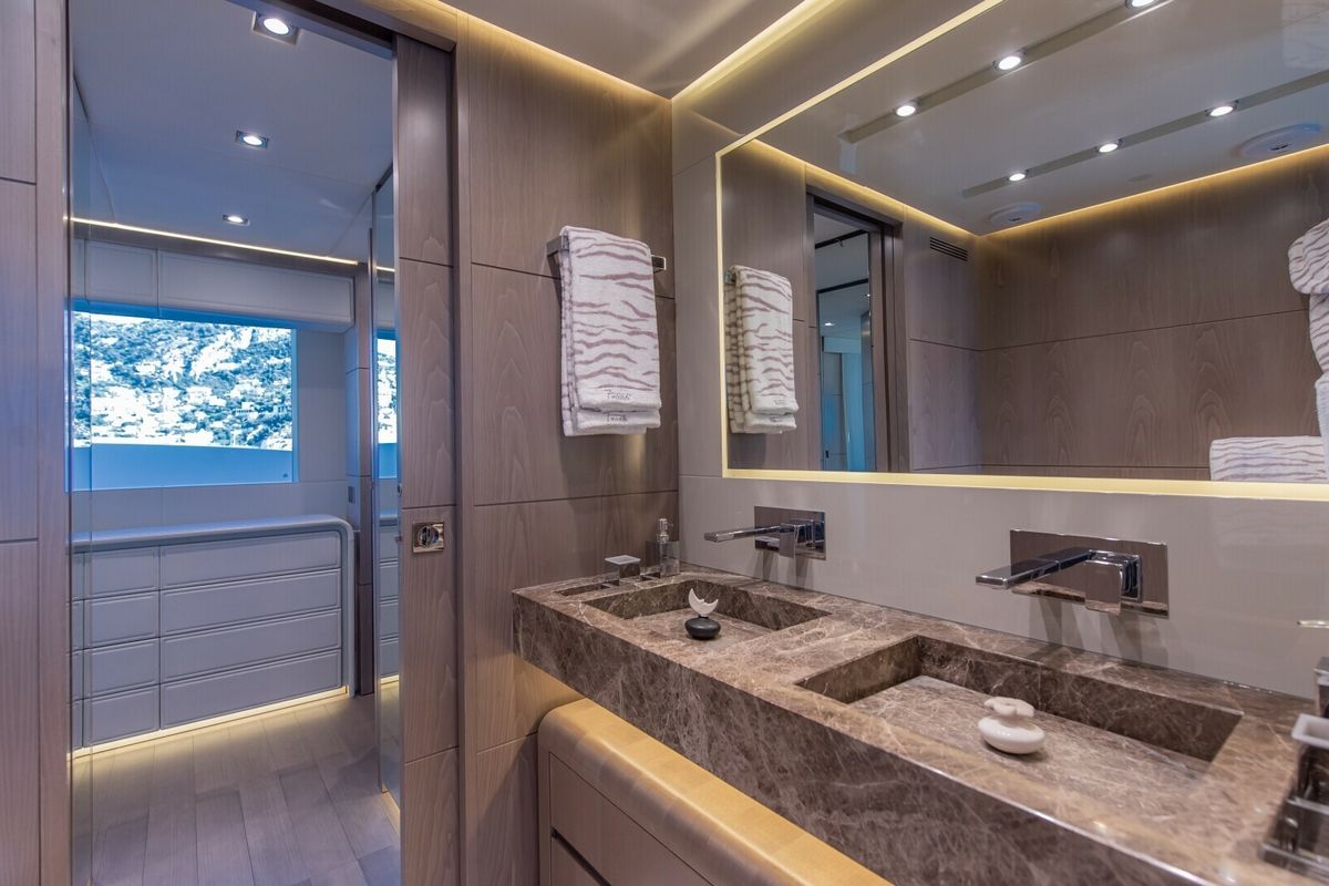 · Main-deck master suite with 180° panoramic windows· Full beam VIP suite