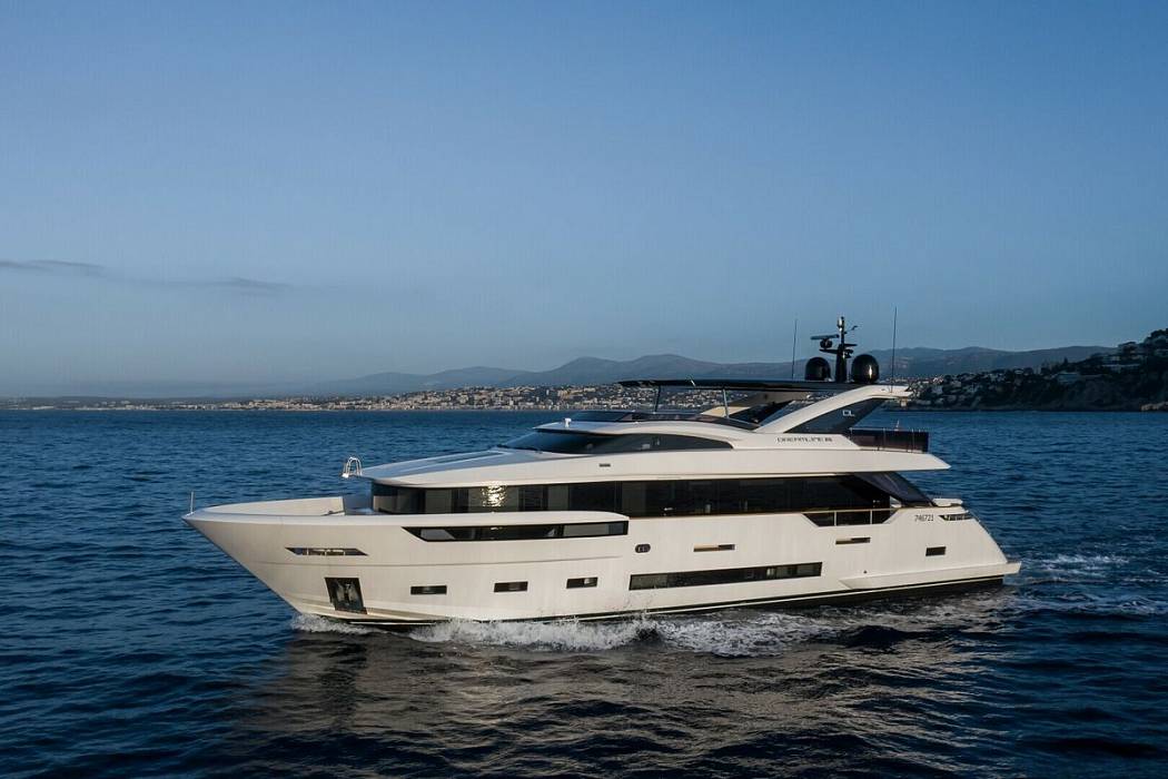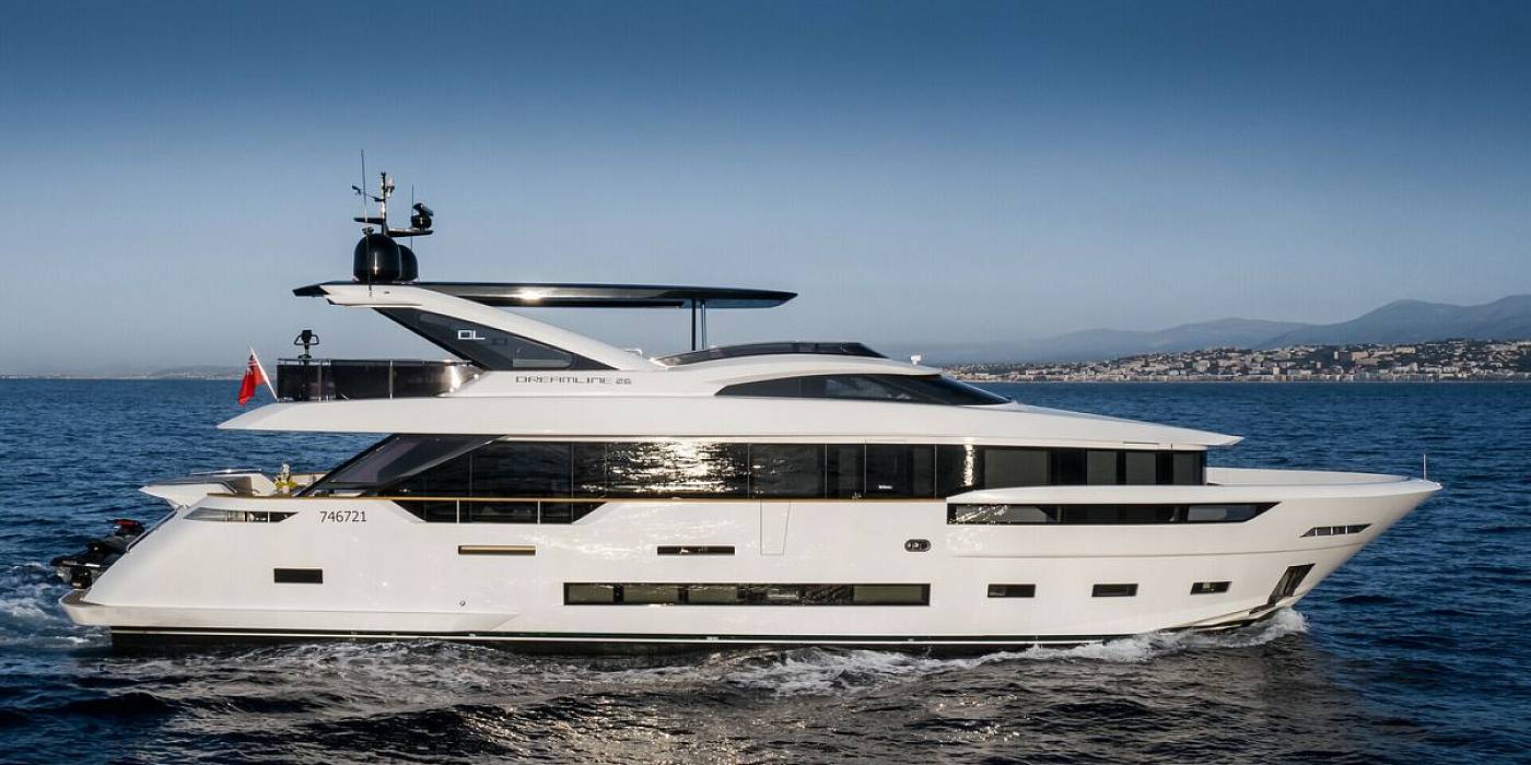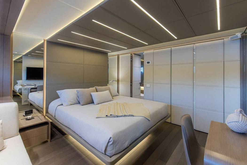 Delivered in 2015, 7 Seconds is a Dreamline 26 yacht built in GRP and designed by Enrico Gobbi’s Team for Design. She is equipped with CMC zero-speed stabilisers for stability underway and at anchor.Her internal volume is 140 GT, giving her a spacious interior layout rarely found on yachts of this size. 7 Seconds accommodates eight guests in four suites, each with a private bathroom and television. The crew quarters for three are located separately to ensure operational independence and guest privacy. The master suite, positioned forward on the main deck, features wrap-around glazing that provides a 180-degree sea view and opens directly onto a private foredeck lounge.