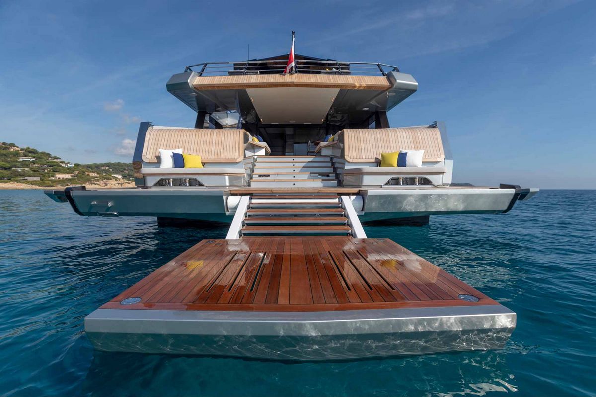 Carat is a 27-metre wallywhy200 delivered in 2024, offered in like-new condition with under 500 engine hours. She is registered under the 24-metre load line, reducing running and berthing costs while delivering an interior volume of around 200 GT, typically associated with much larger yachts. This is achieved through the model’s full-wide-body layout, a defining element of her futuristic spaceship concept.A large stern opening hatch with dedicated jetski storage is a key feature. Carat is EU and US ready and fitted with a Gyro stabilisation system for improved comfort underway and at anchor.