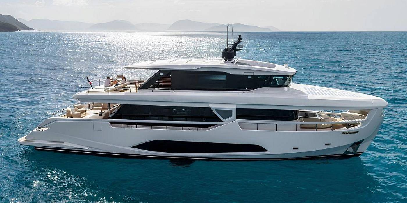 Ferretti Infynito 90’s performance figures include a maximum speed of 23 knots, a range of up to 1,200 nautical miles at 12 knots.
