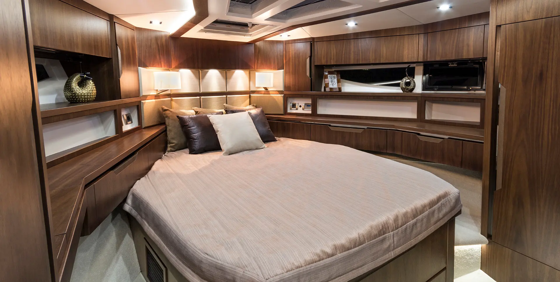 - The owner’s cabin located midship offers great space