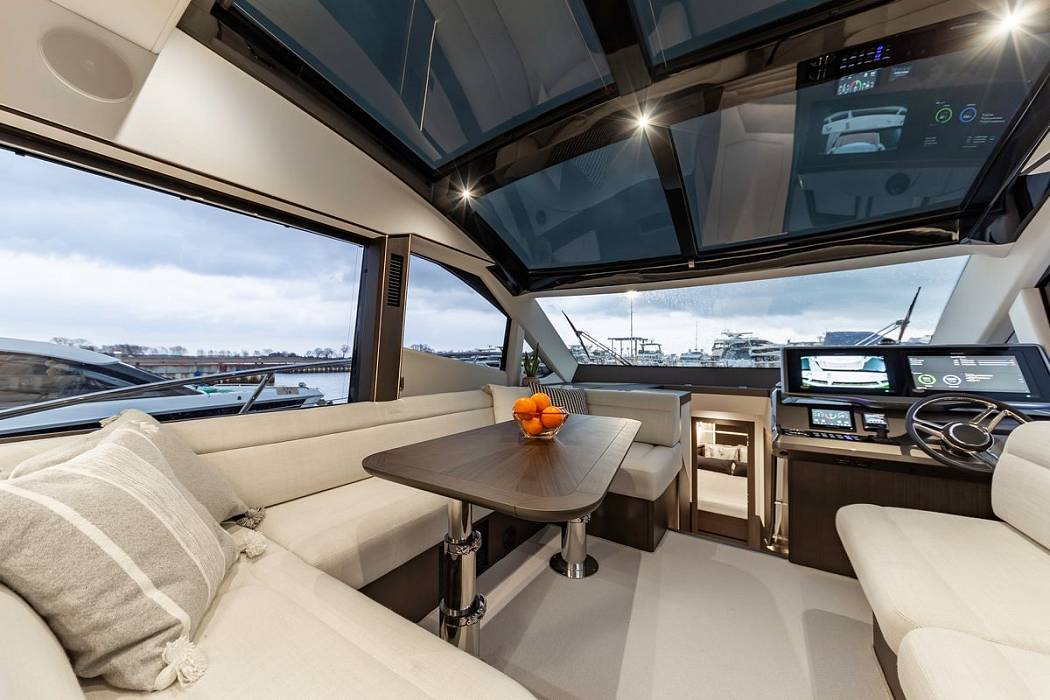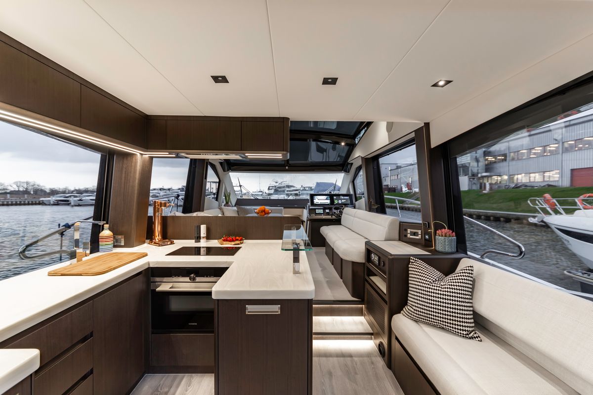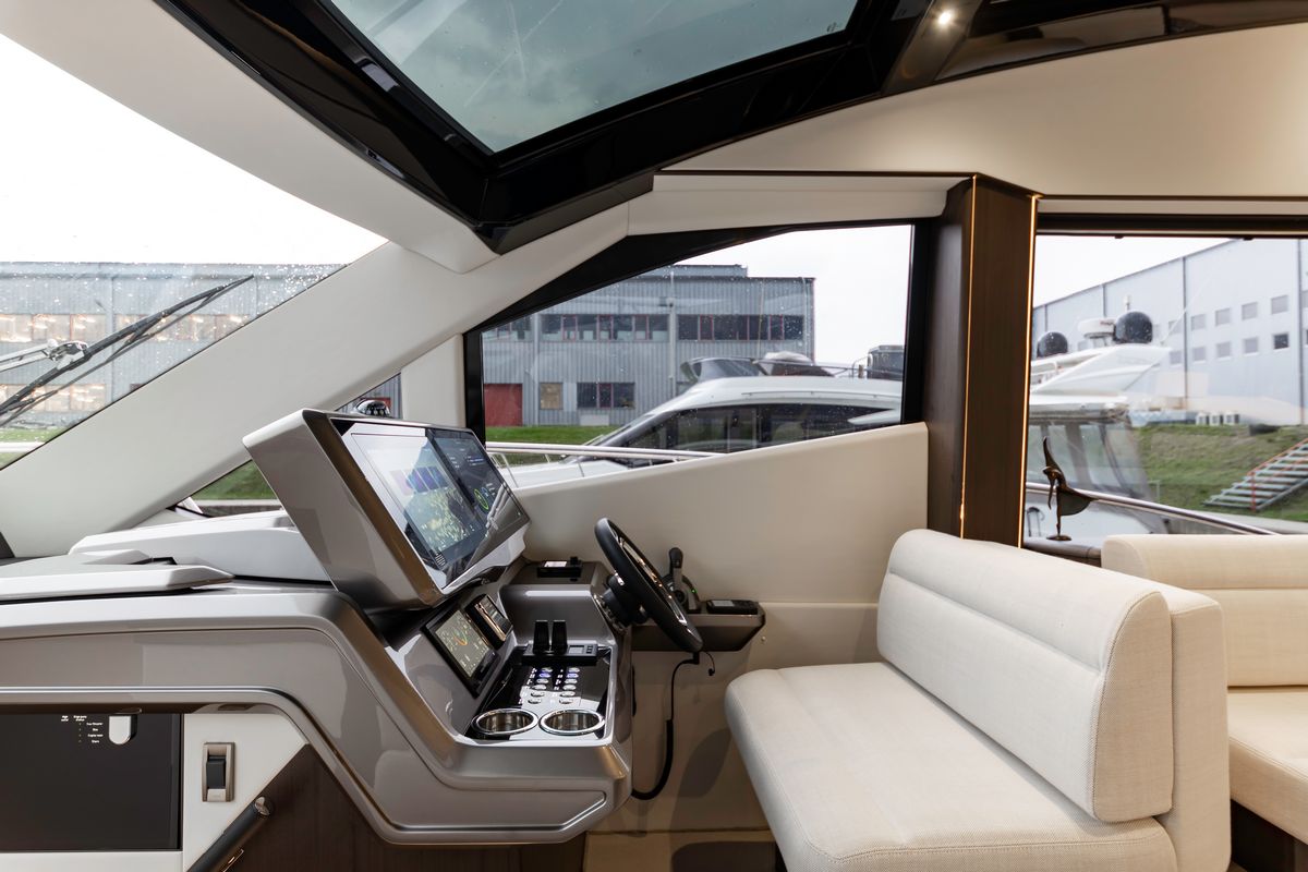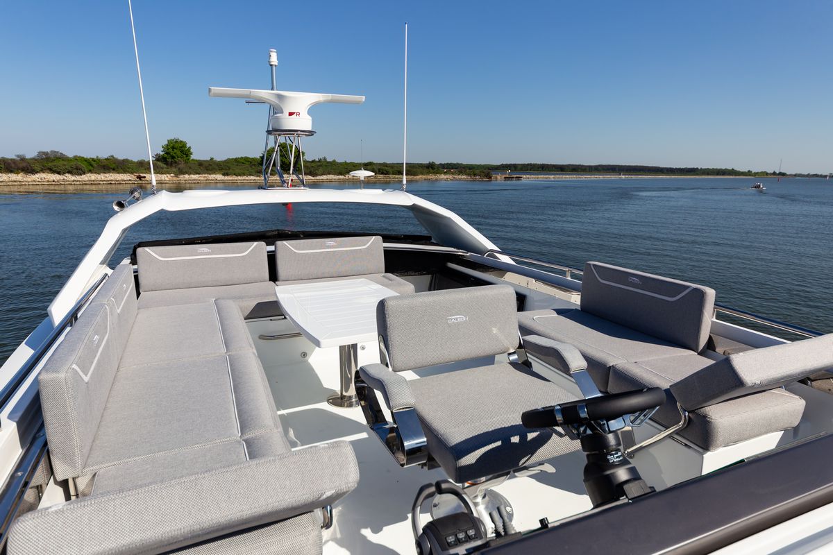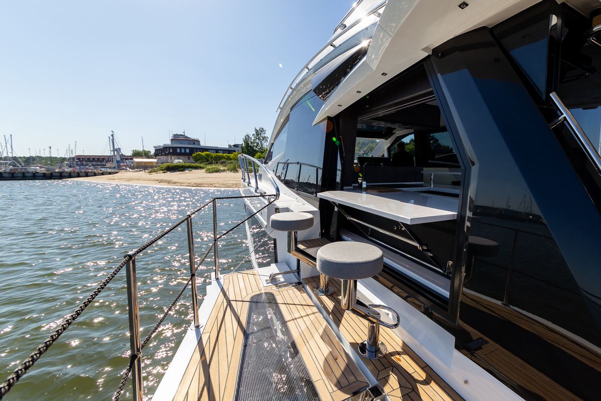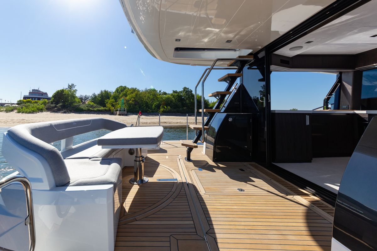 A powerful hydraulic bath platform on this Galeon 510 SKY will let you engage with a variety of water paraphernalia while the bow rest area, coming with a transformable seating arrangement, will be quickly turned into a proper sundeck. All options allow for the outstanding Beach Mode to be fitted, extending the cockpit width to an incredible six meters on board Galeon 510 SKY.