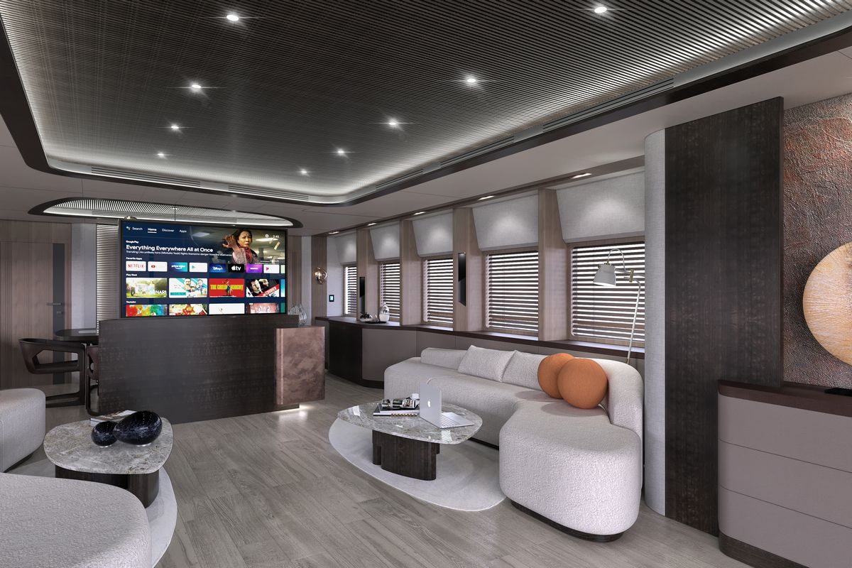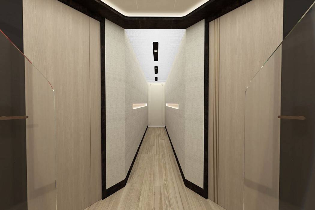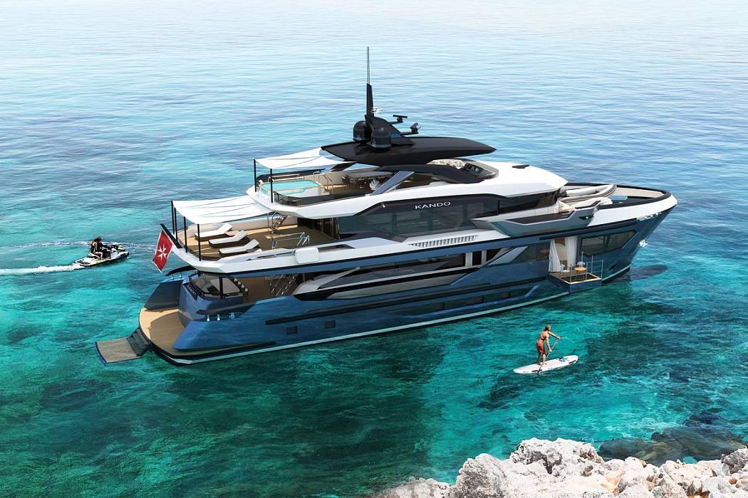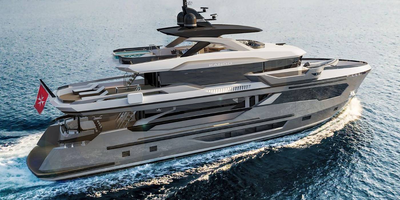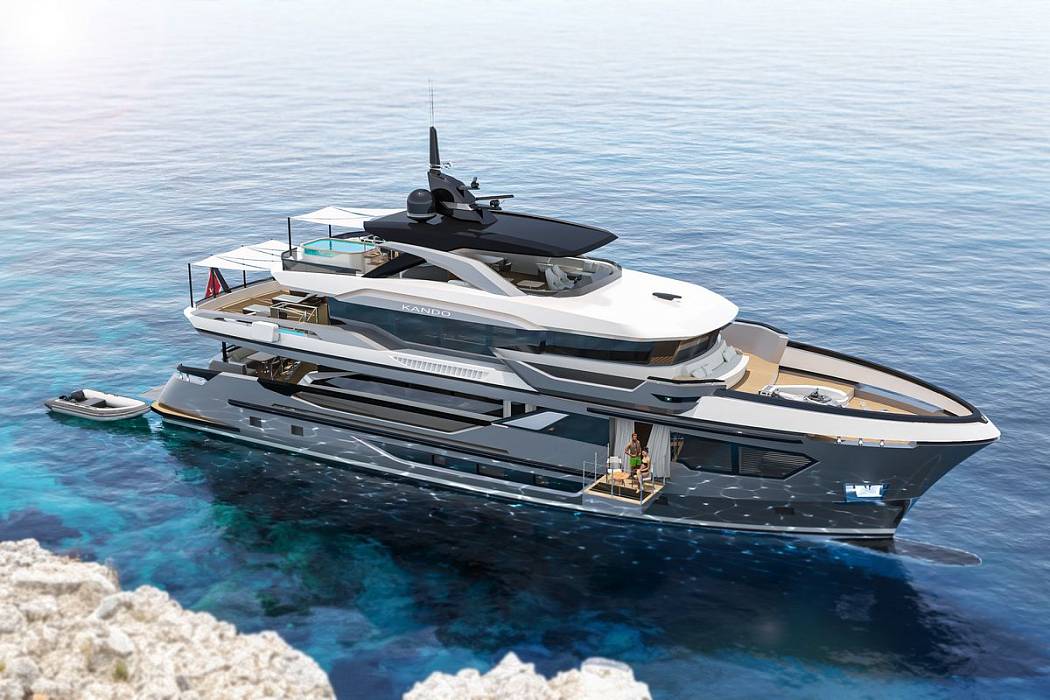Kando 110 is available for delivery in 24 months from contract signing, and all major interior and exterior elements are fully customizable to match an owner’s requirements. Kando 110 is a full-displacement explorer yacht built for long-range cruising and extended stays at sea. Designed with a steel hull and aluminium superstructure, the Kando 110 combines ocean-going strength with interior volume rarely seen in her class.Her 299 GT allows for a six-stateroom configuration, including a full-beam master suite on the main deck forward. The suite features panoramic windows, an owner’s office, a dressing area, and a spacious bathroom.