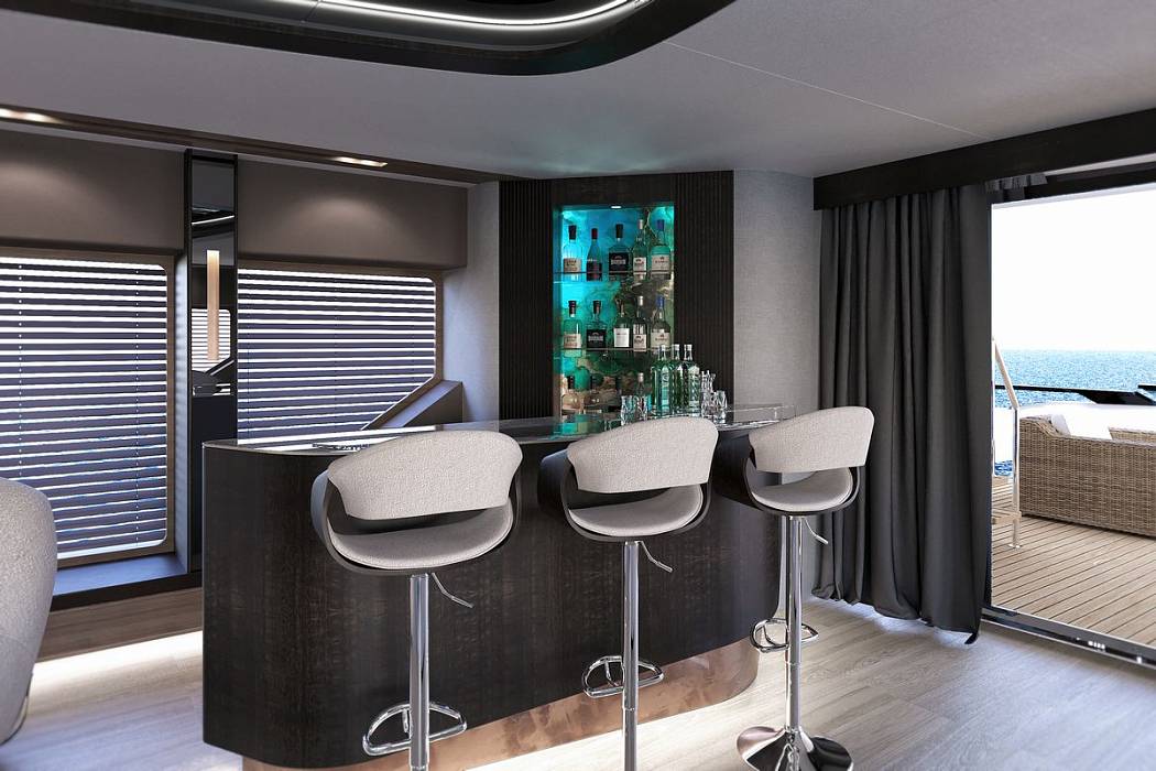 • Steel hull and aluminium superstructure• Master suite with panoramic windows on the main deck