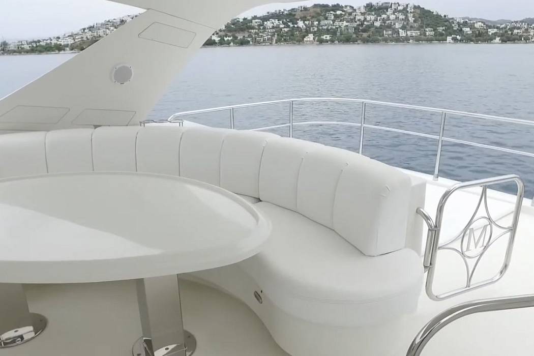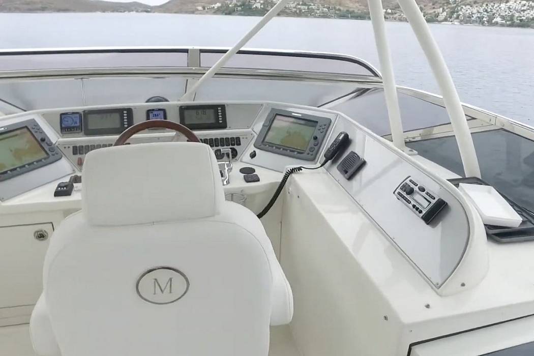 Marquis 690 Fly is a 21-meter flybridge motor yacht built in 2008 in the United States with exterior styling by Nuvolari-Lenard. She is powered by twin diesel engines with approximately 1,350 hours, giving her proven operational history while remaining within a moderate usage range for her class and age. In summer 2023, the Marquis 690 Fly received updated navigation electronics including a new RAYMARINE AXIOM+ 12, Multi-function 12" Display, Cyclone 4ft Open Array, Cyclone Radar Pedestal 55-watt Cyclone radar pedestal. Radio equipment was also replaced with new units in 2023.The main deck contains the salon, dining area and galley on one continuous level. Large side windows provide visibility, while two seating zones, a dining table and an entertainment cabinet create a functional social space. Aft, the cockpit allows outdoor dining and connects directly to the hydraulic platform. The Marquis 690 Fly is equipped with a tender for five guests, stored on the platform for easy launch and recovery.