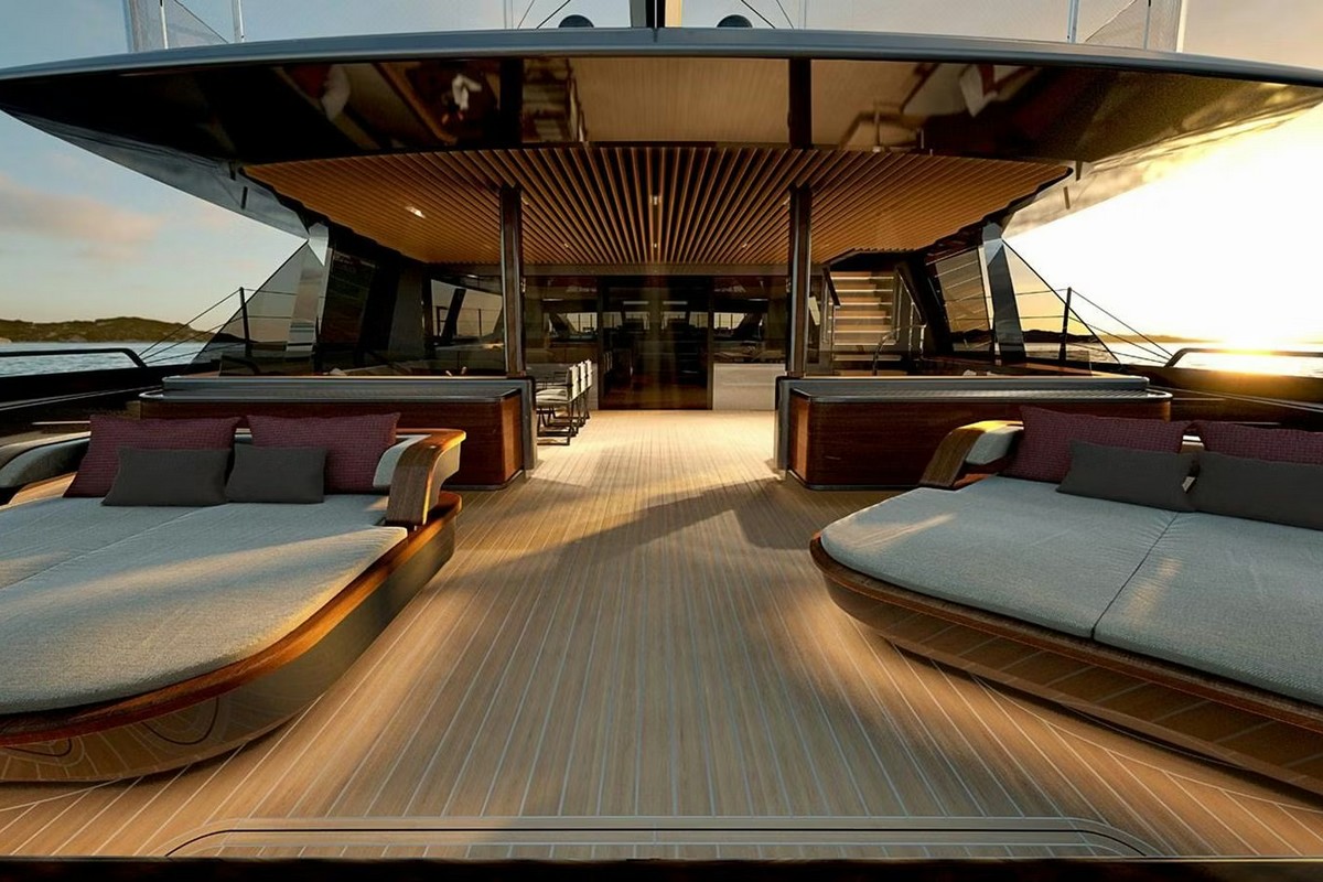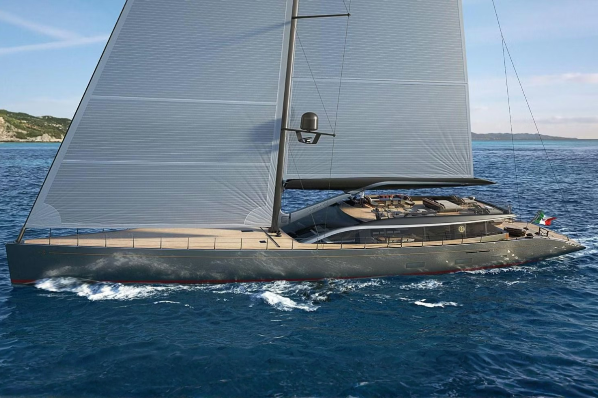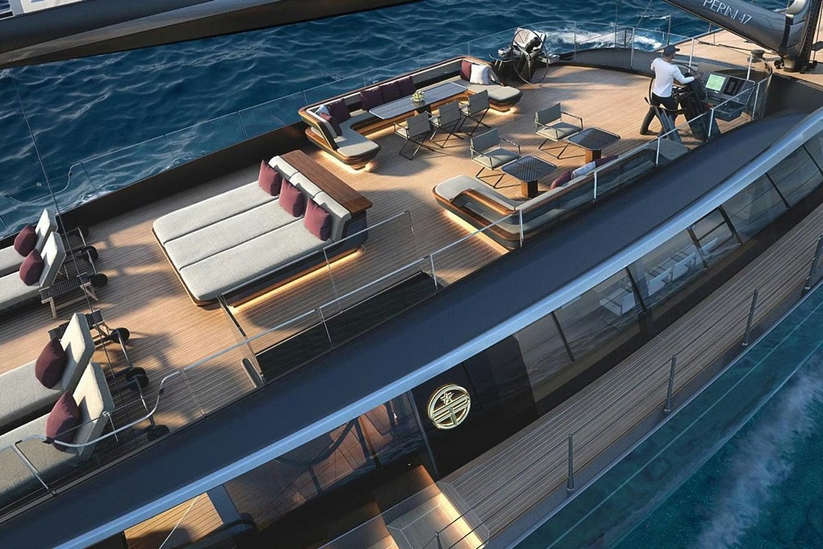 Available for Order. The Perini Navi 47M Sloop is a 47-metre sailing superyacht with a waterline exceeding 43 metres, blending seakeeping excellence with refined aesthetics. Her deep V-shaped bow and wide stern ensure both stability and commanding presence, while twin rudders with fly-by-wire synchronisation deliver precise agility in open sea or tight harbours. A re-engineered variable-draught keel extends to 11 metres for enhanced performance yet retracts to just 3.9 metres, granting access to shallow, secluded bays.Soaring to 62.5 metres, the carbon rig carries 1,275 m² of sail, managed by an advanced handling system for safe, rapid manoeuvres. Exterior and interior design by Perini Navi Centro Stile merges classical maritime elegance with contemporary minimalism, emphasising light, proportion, and craftsmanship.