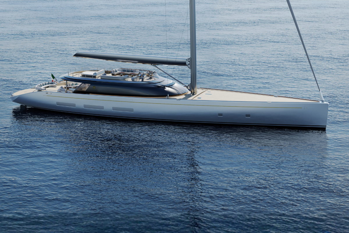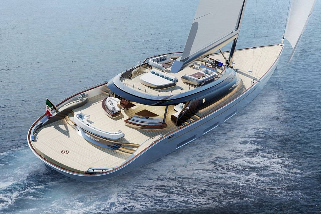 Available for Order. The Perini Navi 48 Cruise Sloop is a flagship of the new Envisionary Fleet - a 48-metre sailing yacht that masterfully blends heritage craftsmanship with forward-looking innovation. Designed for those who seek both transoceanic adventure and refined comfort, she embodies freedom, grace, and endurance in a single, harmonious form.Her advanced aluminium hull features next-generation hydrodynamic lines, delivering smooth motion, stability, and impressive speed under sail. A swing centreboard, twin rudders, and a 62.5-metre carbon mast ensure exceptional agility and performance, whether crossing oceans or enjoying coastal cruising. The expansive flybridge offers an elevated sanctuary for relaxation and socialising, complete with panoramic views and seamless integration into the yacht’s flowing deck layout.