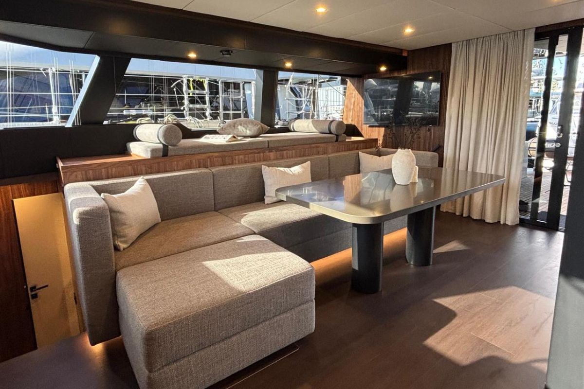 The Sunreef 60 Sailing Sella Mare was specified with a lithium battery bank allowing silent night operation without running the generator.