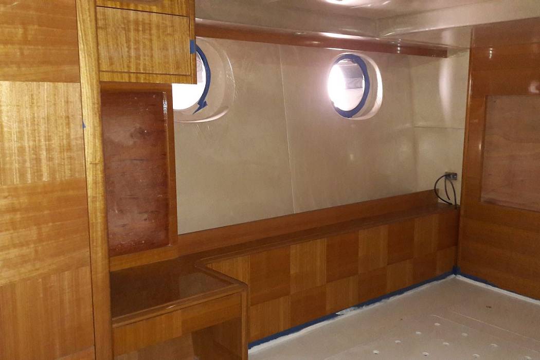 Svetlana accommodates 8 guests across a spacious layout that includes a master suite and three guest cabins, along with two crew cabins. With a 7.2-meter beam, the yacht offers wide interior volumes, high ceilings, and unobstructed views through rectangular saloon windows. Down below, portholes provide natural light and maintain a seamanlike design appropriate for a vessel of her capabilities.