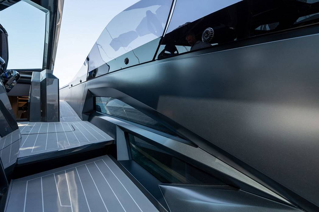 Inside, the Tecnomar for Lamborghini 63 combines lightweight, function-driven materials with Italian craftsmanship. Iconic hexagons, clean lines, and Y-shaped motifs reinforce the automotive DNA.